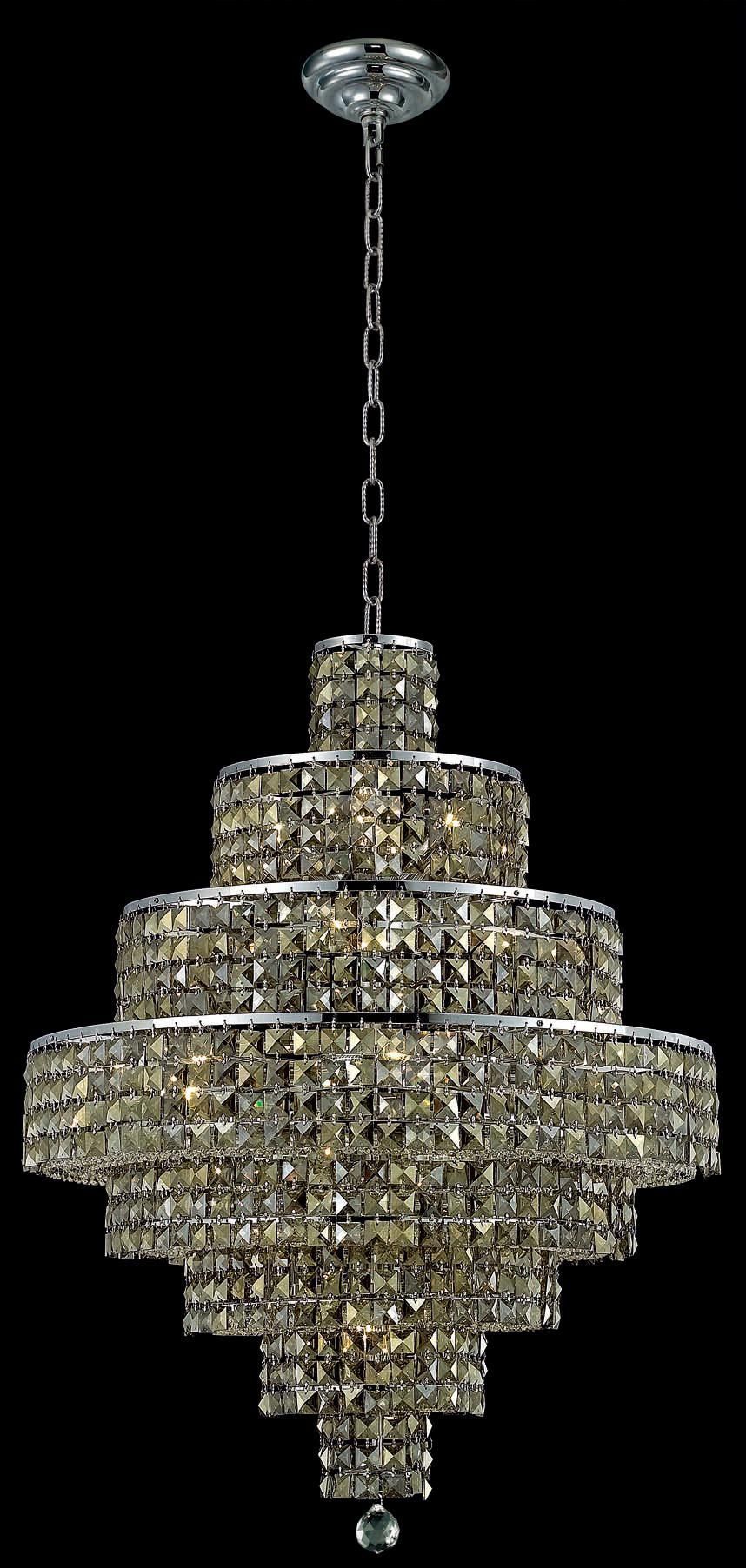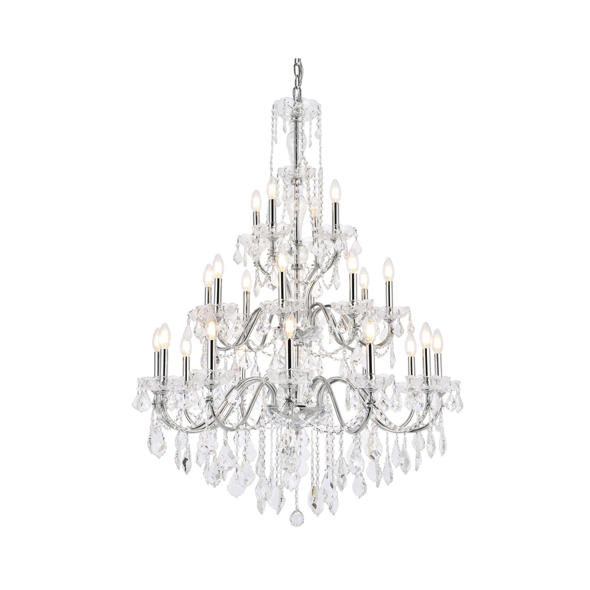 A chandelier is a decorative light that hangs from the ceiling and that has branches for light bulbs or candles. A crystal light fixture that hangs from the ceiling over your dining room, bedroom or any living space. we have beautiful chandeliers different designs.
